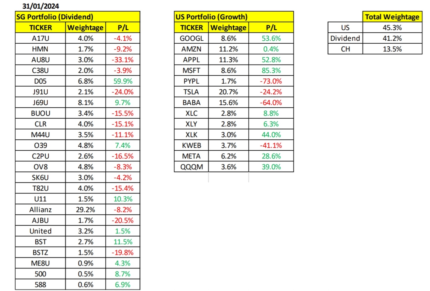 Review of my Portfolio (31/01/2024)