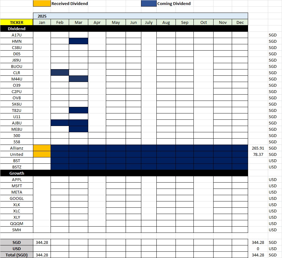 Dividend Portfolio: CLR, M44U, ME8U, T82U, United Global Durable Equities