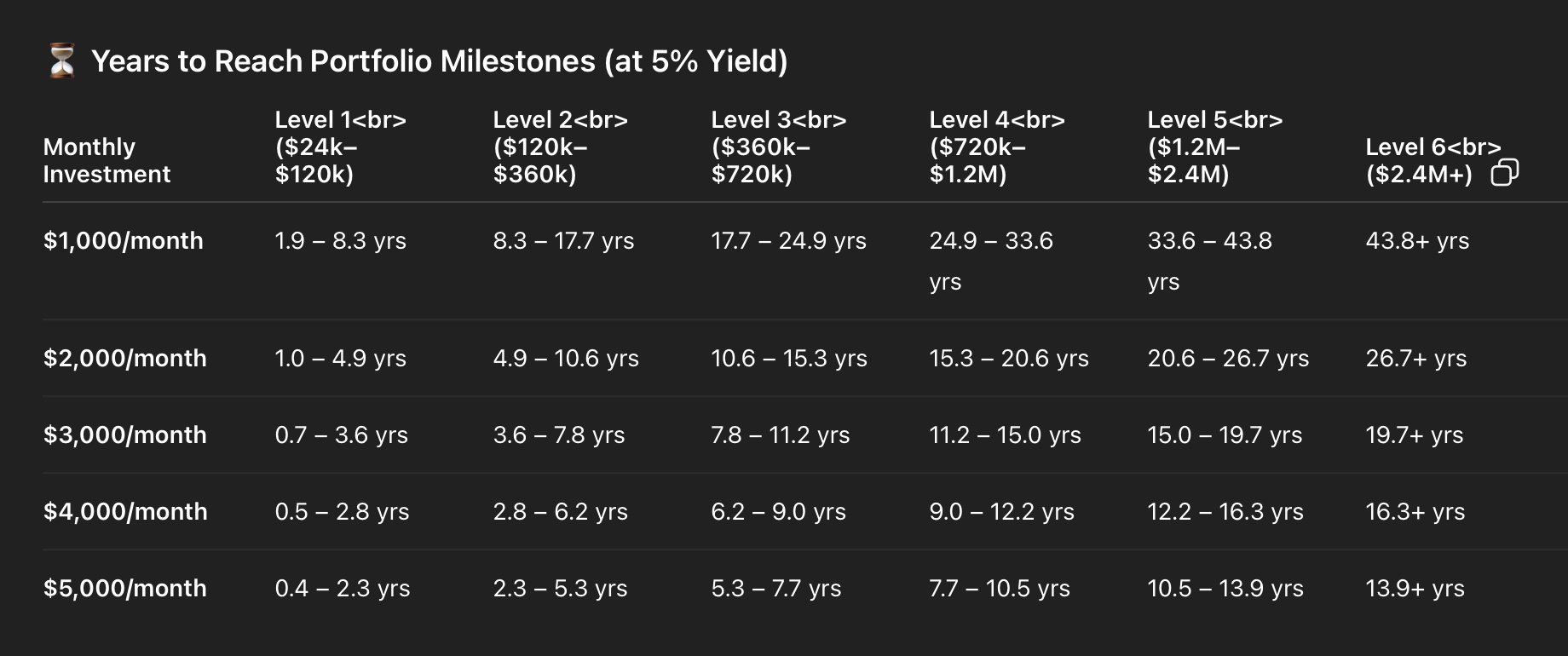 - In general, there a several milestones for different passive income level.