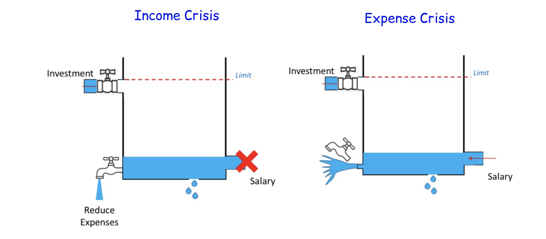- Whenever we recieve our salary it will flow into a leaky tank.