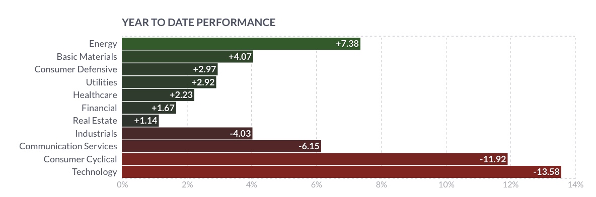 - During this period, the technology, consumer cyclical and communications sectors are sold down.