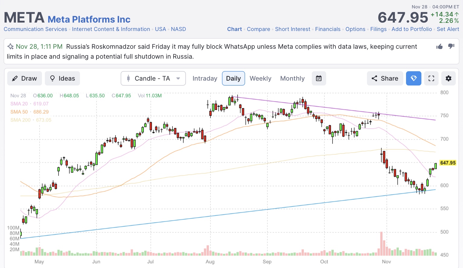 - My #1 is still META. Will continue to nibble as long price is below $700 and take bigger position below $550.