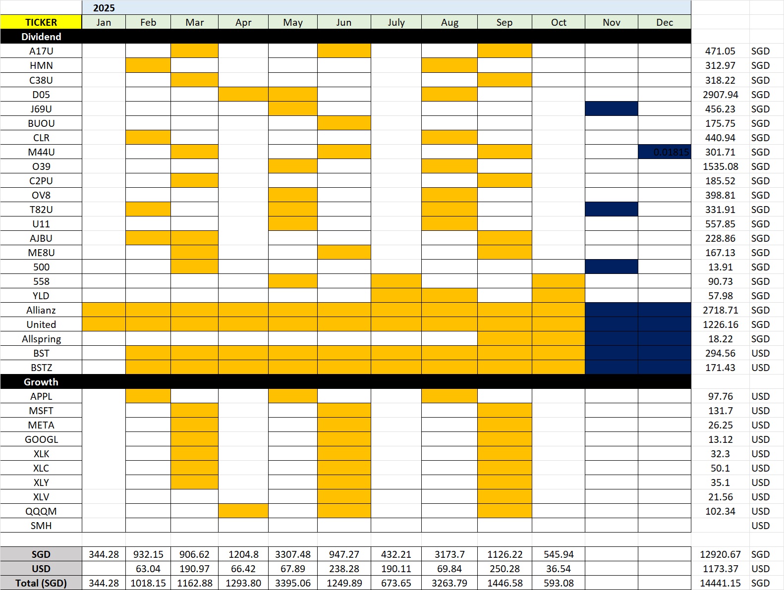 Dividend Portfolio: 500, 588, AJBU, J69U, T82U, Allspring Global Equity Enhanced Income, United Global Durable Equities