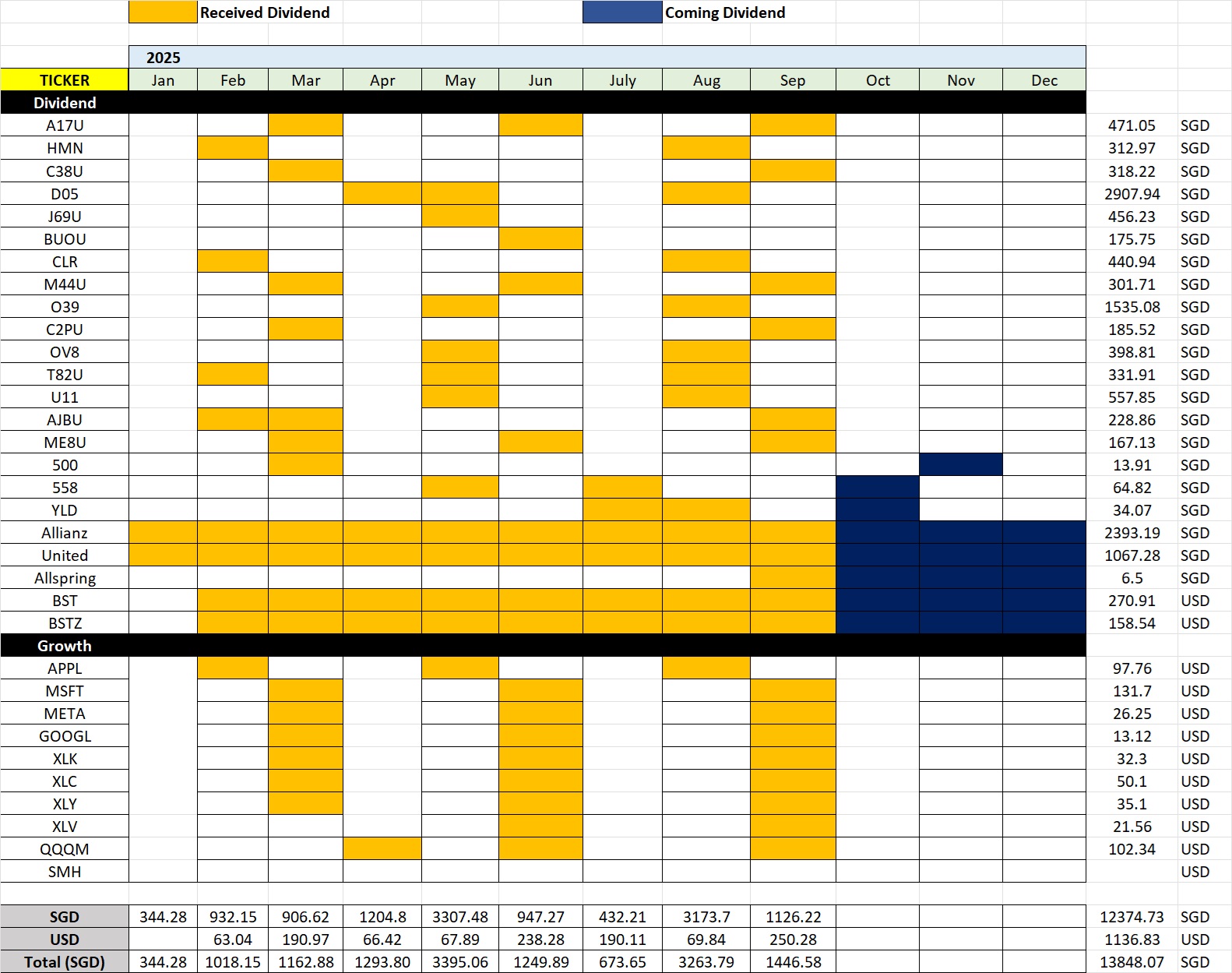 - Current structure is as follow, the weekly portfolio dividend yield about 6%+ after tax.