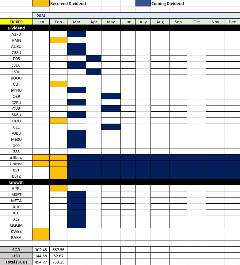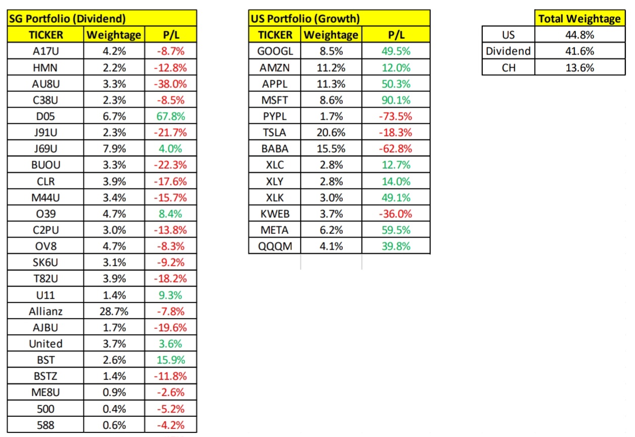 Dividend Portfolio: HMN, C2PU, A17U, AU8U, J91U, C38U, SK6U, United global durable Equities