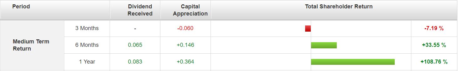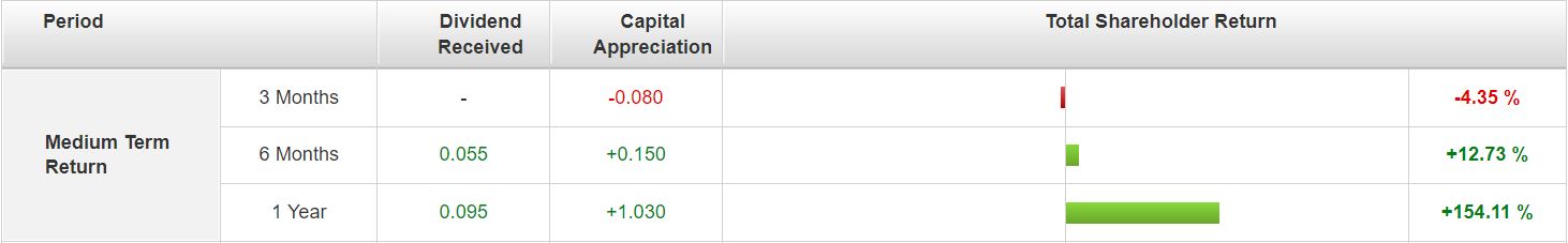 With such a strong run up, this resulted in some form of profit taking, which resulted in a negative return of 4.35% for the past 3 months.