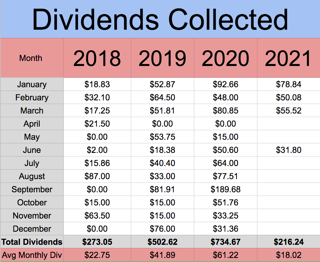 So let's talk about dividends, I don't think there will be any increase in dividends this year, 2021 as the pandemic is still around as vaccine programmes have been slowly rolled out. I will have a drop in dividends as I sold off First REIT last year. So not expecting to hit a monthly 3 digit dividend this year but I hope for at least a high 2 digit dividends. I have been focusing a lot on US stocks this year and I have not been buying any local stocks where most of my dividends are from