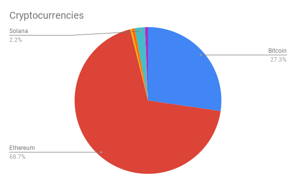 I am adding in small amounts as I think my proportion of 0.14 BTC and 5 ETH is good and I want to focus on building up my stocks.