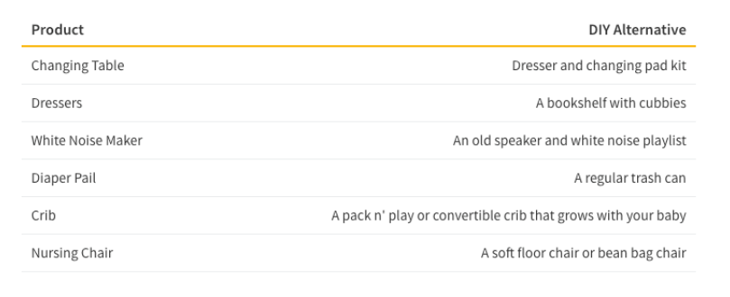 While bells and whistles aren't vital to the development of your baby, they still have a strong appeal for parents who want to spare no expense for their baby's arrival. Even so, it doesn't hurt to consider cost-effective alternatives to popular nursery products.