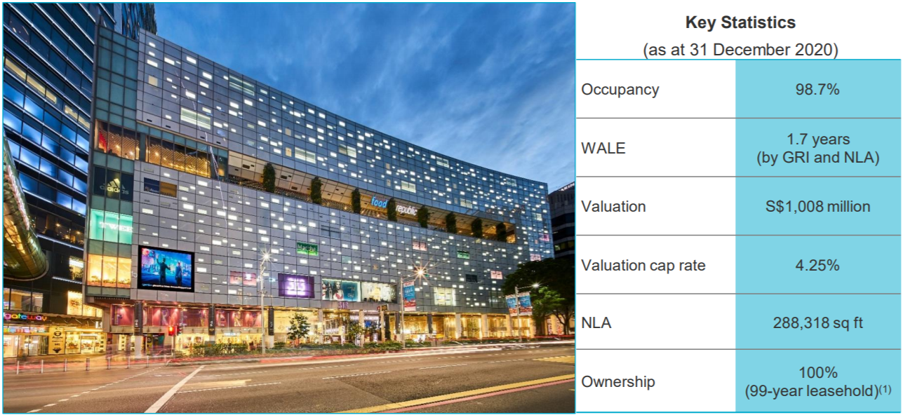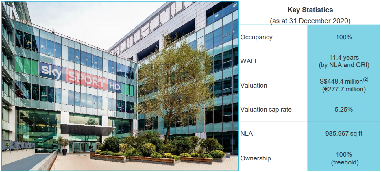 Its portfolio comprises a leasehold interest in, 313 somerset, a prime retail property located in Singapore and a freehold interest in Sky Complex, which comprises three grade-A office buildings located in Milan. The portfolio has a total NLA of approximately 1.3 million square feet, with an appraised value of S$1.4 billion.