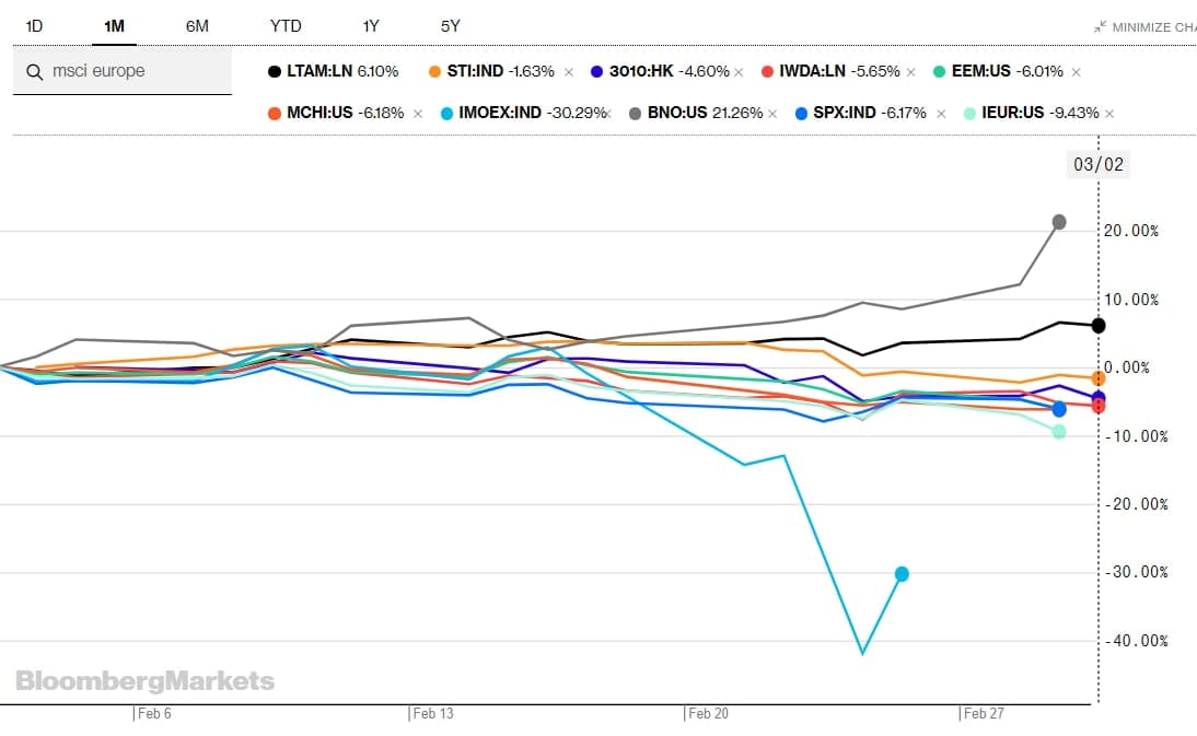 We can see that the global markets were generally not impacted by the Russian-Ukraine conflict, with the Russian index being down -30.29% in comparison to the World Index and much of the other major geographical indexes around the world. This is largely due to the relatively small weight Russia holds in the world economy (GDP contributing 1.68% of the world GDP).