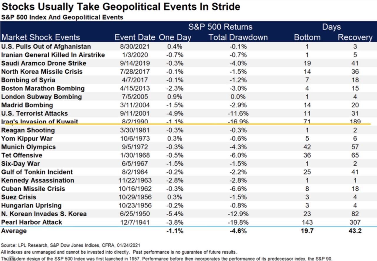 The stock market has also generally recovered very quickly from man-made geopolitical events like Wars.