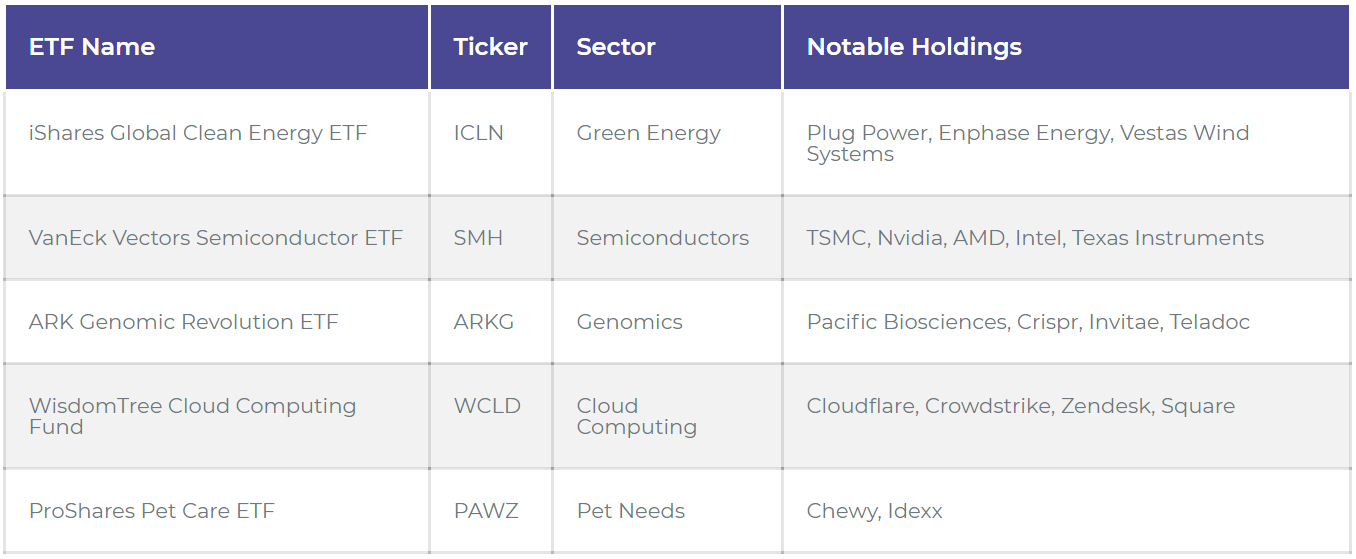 Let’s take a look at some specific sector ETFs that have caught my eye in the last few months: