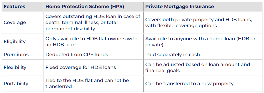 Private property owners or HDB homeowners looking for alternatives to HPS can choose private mortgage insurance from various insurers. There are two main types:
