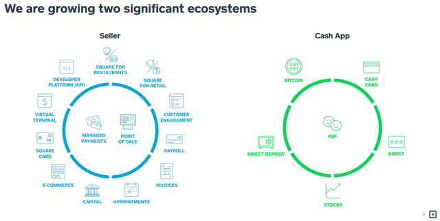 The other business segment is Cash App, which is an all-in-one financial services solution for consumers. The app allows consumers to store money, pay for goods and services, and invest, all in one place, including Bitcoin, stocks and more.