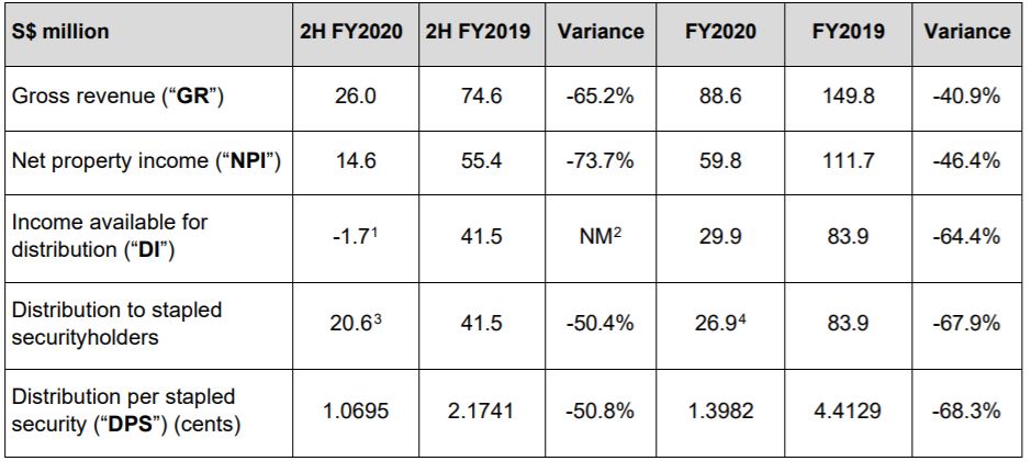 For FY2020, FHT has reported a year-on-year decline of 40.9% and 46.4% in Gross Revenue and Net Property Income respectively. The lower decline, in comparison to 2H FY2020, was due to better business performance in the first quarter of FY2020 which partially mitigated the significant impact of the COVID-19 outbreak.