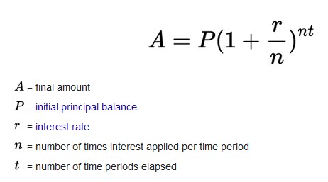The formula for Compound Interest is: