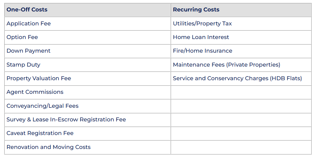 The cost of your new home does not stop at your down payment, so remember to have enough cash and CPF savings before you make your big purchase.