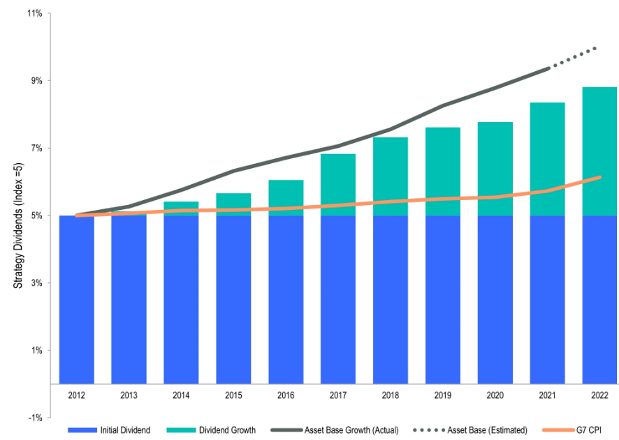 Exhibit 3: Infrastructure Dividends, Above Inflation, Are Linked to a Growing Asset Base