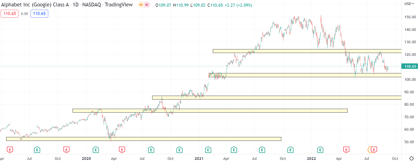 Performance of Google, a popular 'FAANG' stock, over the past 2 years.
