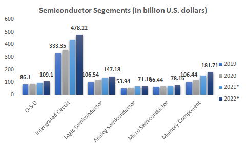 Memory semiconductor. Their core function is used for digital data storage. They are expected to reach approximately USD 181.71 billion by the year 2022.