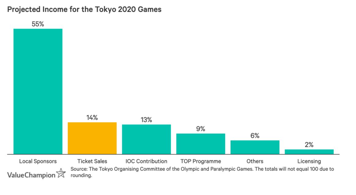 Although digital advertising still is very much accessible to global markets, what certainly isn’t will be the 14% of revenue expected from ticket sales. Japan still intends to allow local ticket holders to attend. However, it is still unclear as to the logistics of allowing local spectators and the total capacity per event and venue. What is certain is that this bucket will generate significantly less income for Japan.