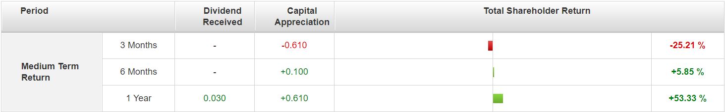 A sizeable amount of the return came from its dividend payout to shareholder, which consists of a 4 Singapore cents special dividend in the latest result. The remaining returns came from capital gains.