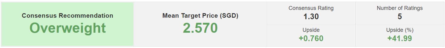 Over the 6 months, analysts have uplifted Kimly’s target price by 7.35%. On top of that, they have upped Kimly’s forecasted revenue and profitability by 19.35% and 6.55% respectively largely due to the full year contribution from Tenderfresh and the continued elevated demand from the ‘work from home’ trend.