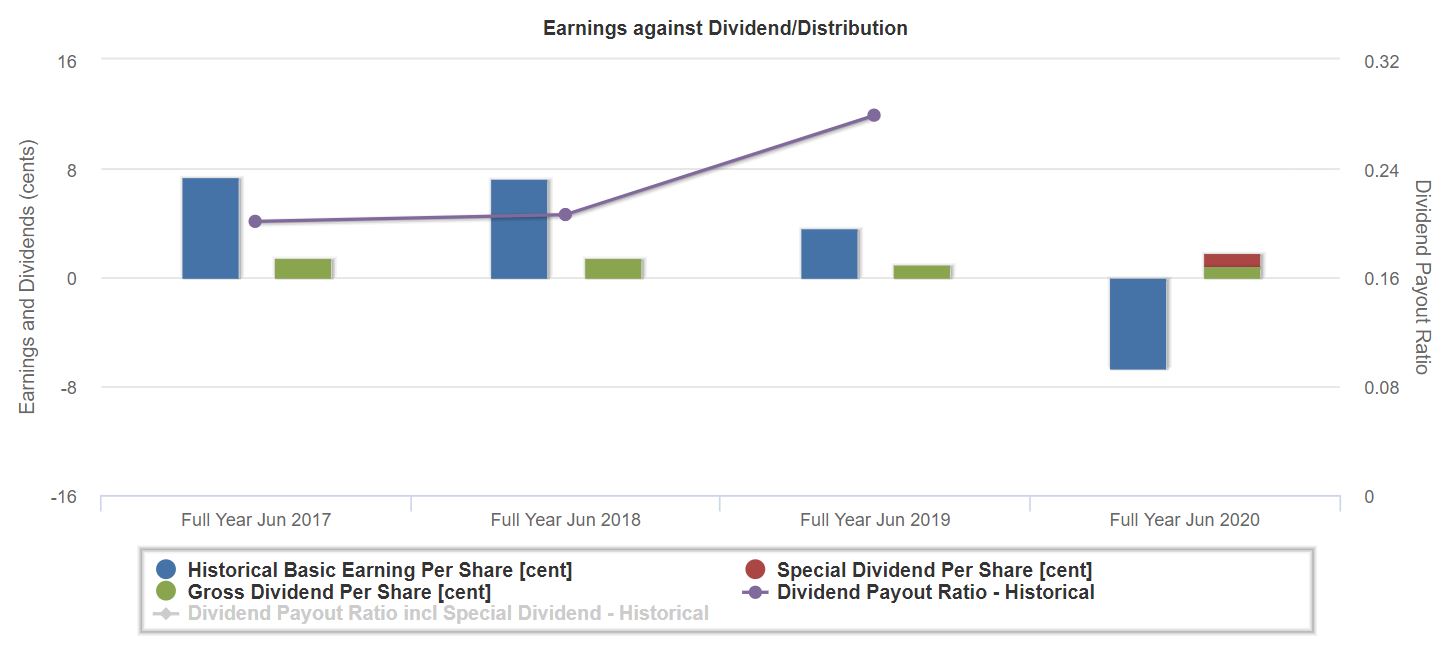 Even as Oxley registered a loss in FY2020, the company paid out a gross dividend of 0.82 Singapore cents per share and a special dividend (Red Bar) of 1 Singapore cents per share, in celebration of the 10th anniversary of the incorporation of Oxley.