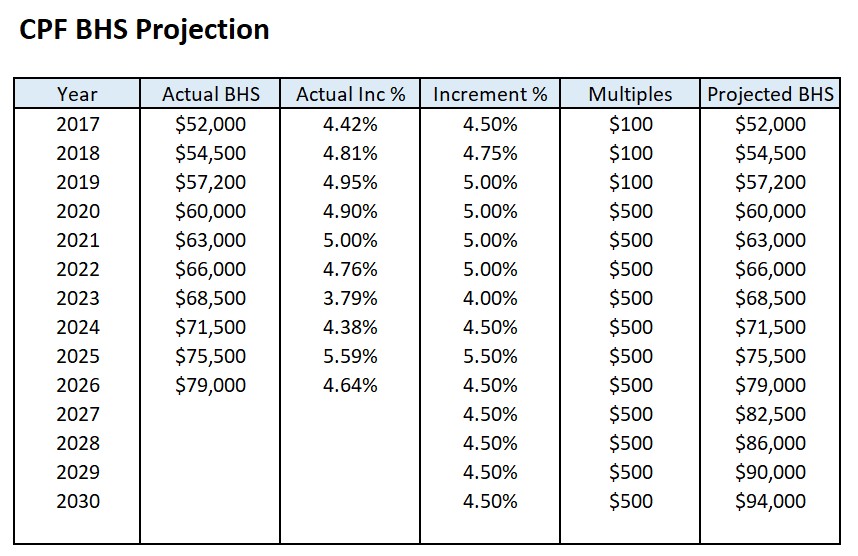 When I made my projection last year, the % increase of BHS was rounded to 4%, 4.5% and 5.5%. I made the assumption that the rate of increase would continue its upwards trend and projected an increase of 6.5% in 2026 BHS. It turns out that the actual BHS inflation announced is set at 4.64%. CPFB not only didn't increase the BHS inflation rate, they dial it back to around 4.5% as in 2024.