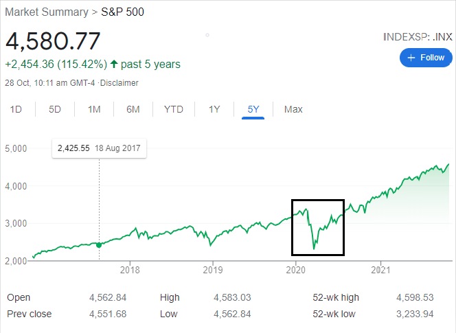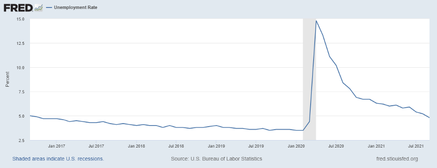 It has been over 18months since the decline in the stock market back in March 2020 due to the pandemic. As governments globally roll out measurements to contain the spread of the virus resulting in further implications in the supply chain and labour markets, unemployment rose to a high of 14.8% in the US back in April 2020. Despite that, we have seen a V-shape market recovery thanks to the actions and policies implemented, preventing further decline in the capital market in an attempt to keep the economy afloat. The FED has introduced various monetary policies, increasing the money supply and reducing the interest rate to an all-time low of 0.25%.