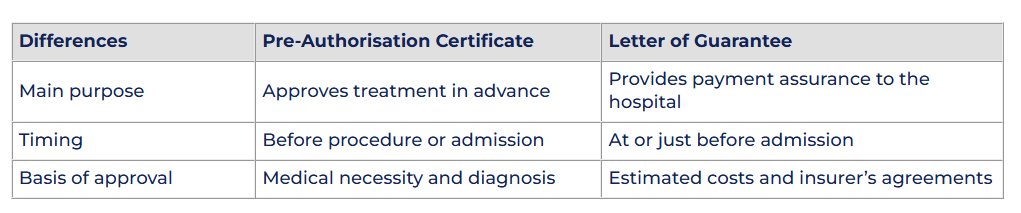 A Certificate of Pre-authorisation (PAC) confirms that the insurer has approved both the medical treatment and the estimated costs before treatment begins.