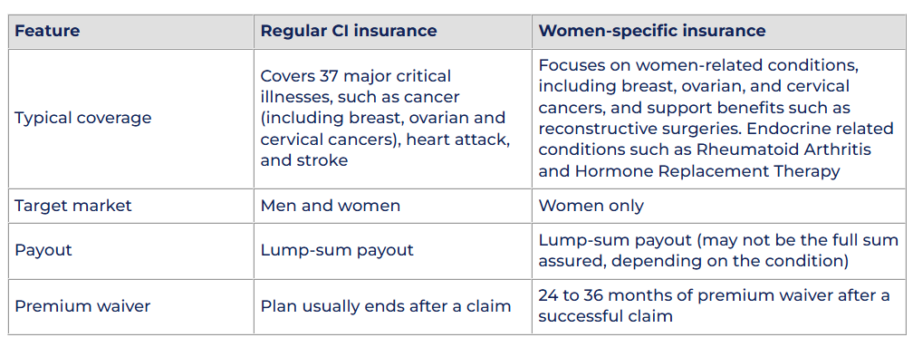 That said, if you already have comprehensive CI coverage with a sufficient lump sum, you may be able to cover such expenses without a separate women-specific policy. In such cases, you might simply want to boost your existing CI coverage instead of adding a new policy.