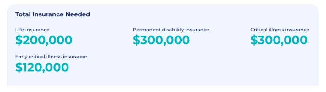 For example, Jenny, a single professional earning $5,000 a month with monthly expenses of $2,500 and no debts or dependents, would need around $200,000 in life insurance and $300,000 in critical illness insurance to be adequately covered.
