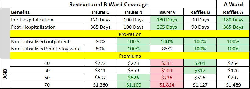 Nevertheless, below is how 4 of the insurers compare based on B1 ward coverage:
