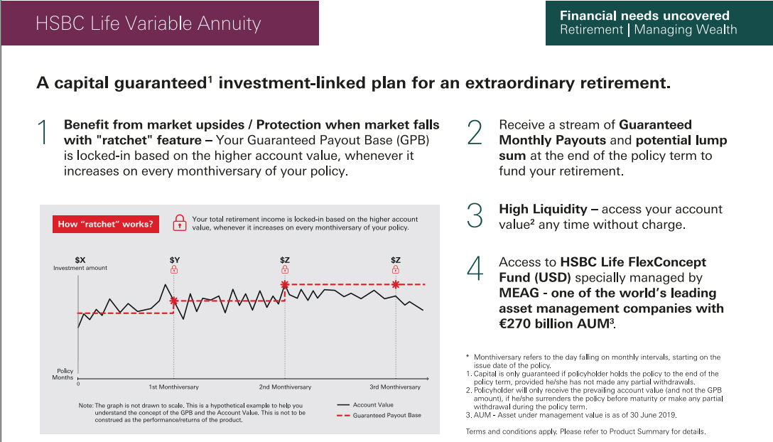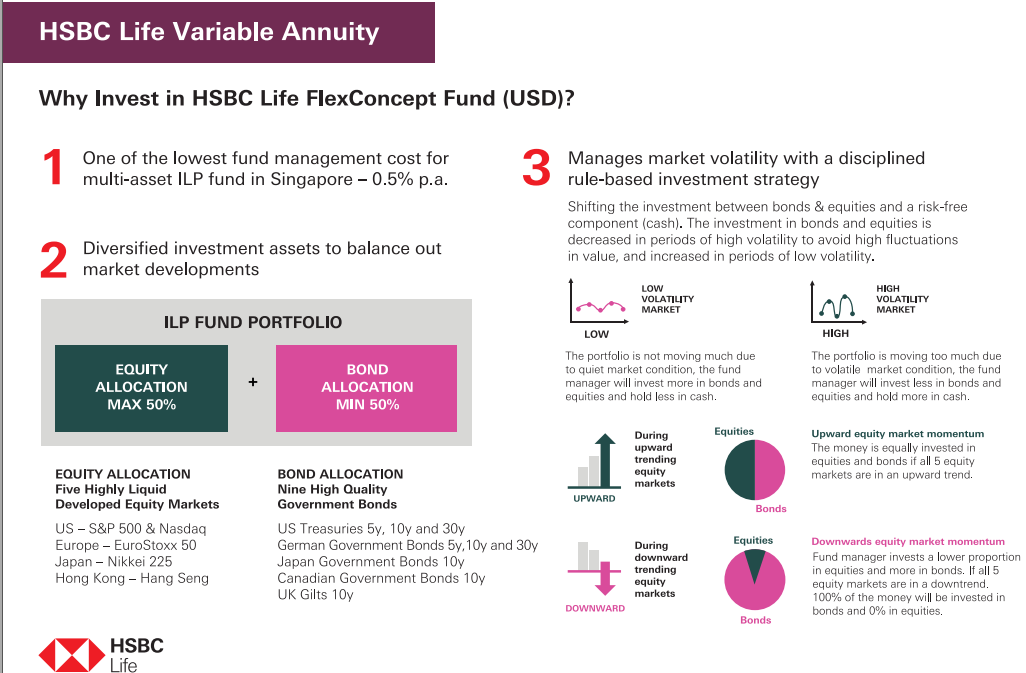 In Singapore however, the best we have is HSBC Life's Variable Annuity policy.