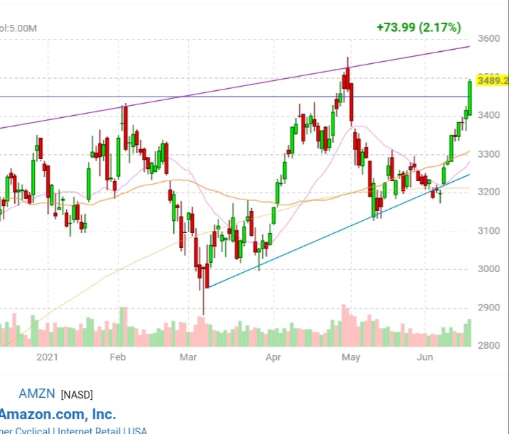I dont know why it rise, i dont read newsπ, but i know Amzn is a good company. Is always a good idea to hold it for long term. But a good entry point is also important. 1 shares now is USD3480+, at this kind of price is really difficult to DCA, so is better to lump sum.